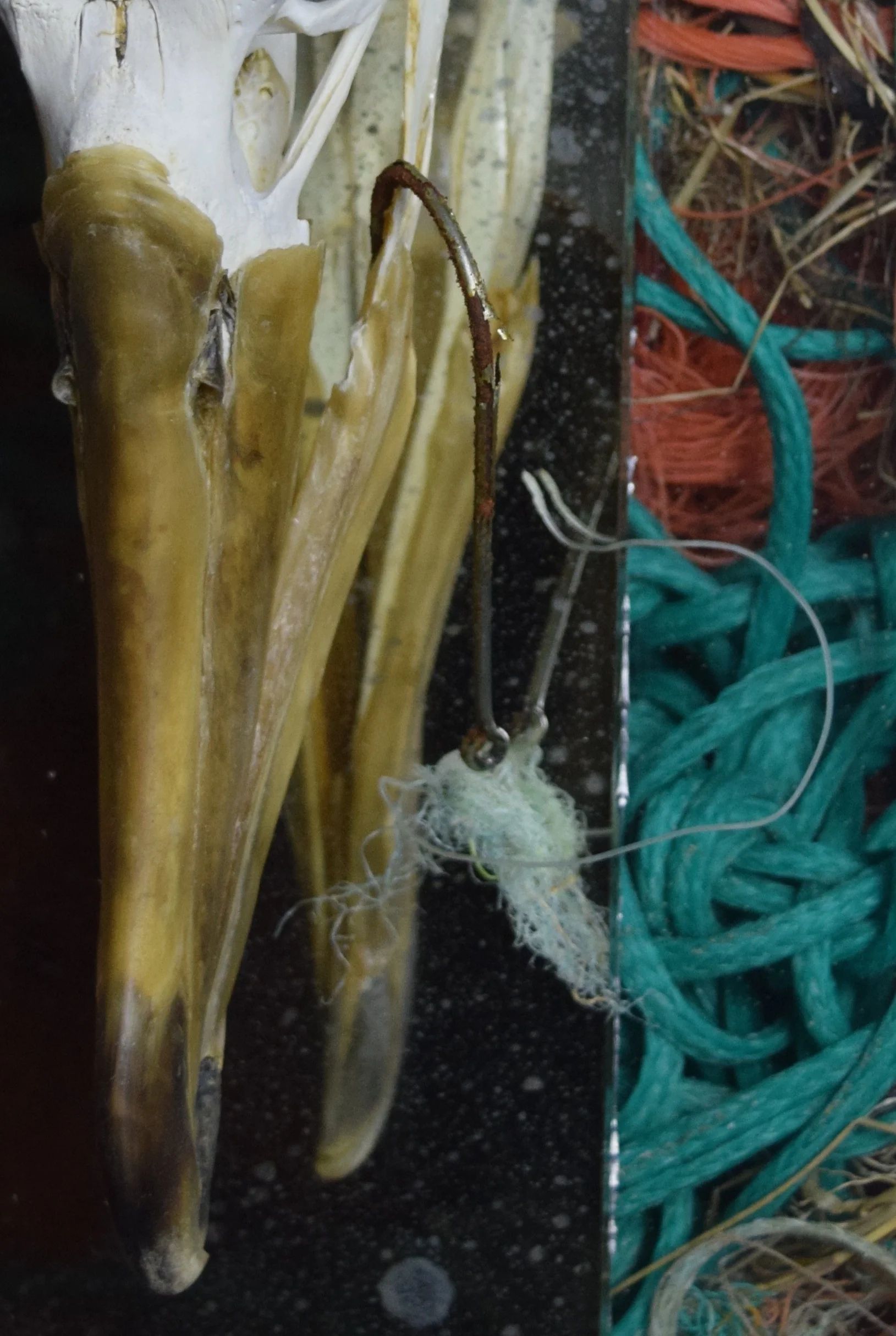 Mediums: wood, gesso, glass, fishing line, net, buoys, albatross skull, metal